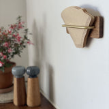 A really nice and simple coffee filter holder, designed here in Denmark and made of solid oak and with a nice matt black or matt brass colored hanger to keep track of the coffee filters.