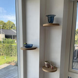 Den afskårne cirkelform skaber et let og svævende udtryk, perfekt til stue, køkken, værelser eller hvor du ønsker et naturligt designelement.