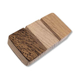 Farveprøven måler 3 x 6 cm og er 1 cm tyk og viser både træet i mørk olieret, ubehandlet og naturligt olieret.