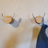 Selve knagen er udført i naturligt, massivt egetræ, og 'geviret' er i rustfrit stål - og fungerer som kroge.