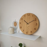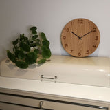 Saksild er et vægur i massivt naturligt egetræ med indgraverede tal, der er skåret direkte ind i urskiven.